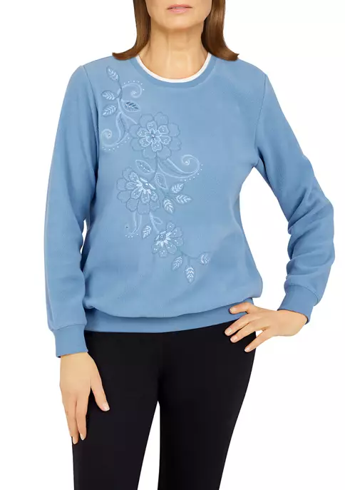Best Sale π Alfred Dunner Petite Copper Canyon Asymmetrical Hem 3/4 Sleeve Floral Print Top π