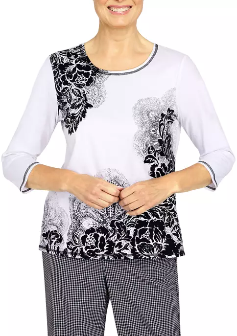 Wholesale π₯ Alfred Dunner Plus Size Sorrento Tapestry Floral Print Lace Neck Top β