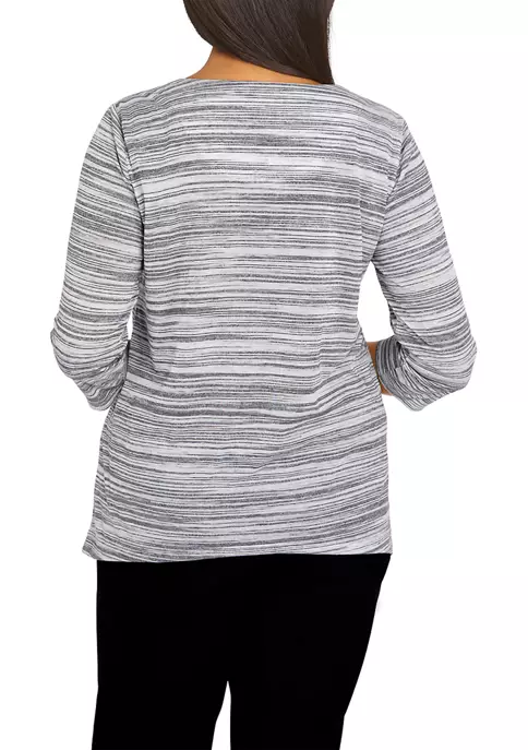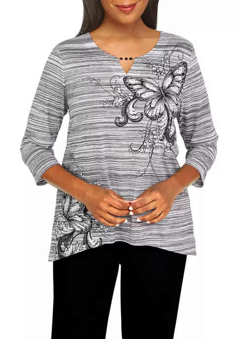Best Sale π Alfred Dunner Petite Copper Canyon Asymmetrical Hem 3/4 Sleeve Floral Print Top π