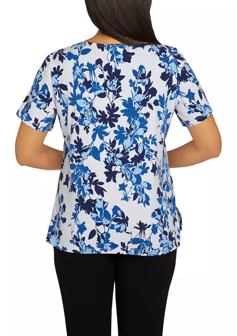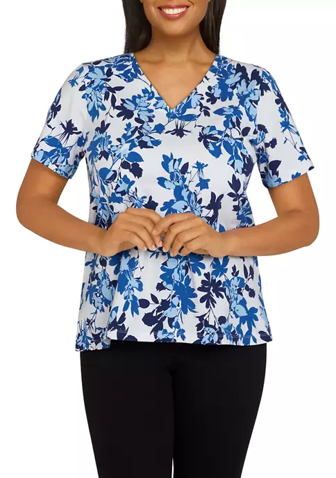 Best Sale π Alfred Dunner Petite Copper Canyon Asymmetrical Hem 3/4 Sleeve Floral Print Top π