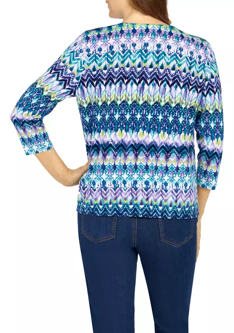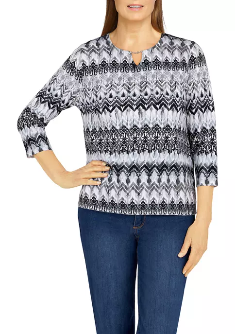 Deals π Alfred Dunner Plus Size Empire State Flower Split Neck 3/4 Sleeve Sweater β