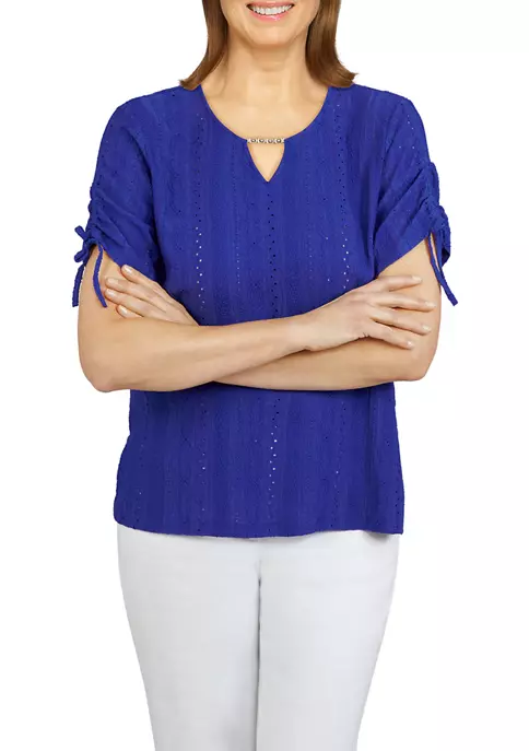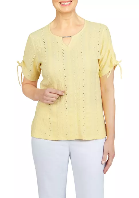 Best Sale π Alfred Dunner Petite Copper Canyon Asymmetrical Hem 3/4 Sleeve Floral Print Top π
