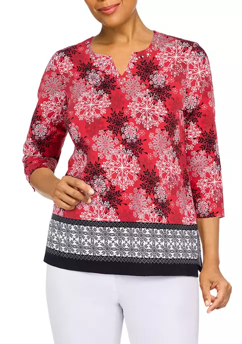 Best reviews of π Alfred Dunner Plus Size Sorrento Asymmetric Floral Embroidered Ribbed Top π₯°