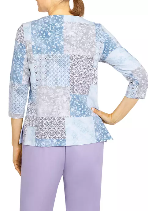 Best reviews of π Alfred Dunner Plus Size Sorrento Asymmetric Floral Embroidered Ribbed Top π₯°