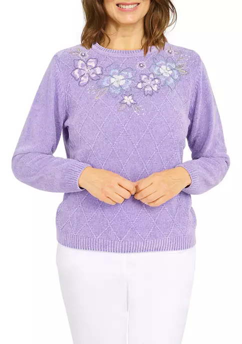 Deals π Alfred Dunner Plus Size Empire State Flower Split Neck 3/4 Sleeve Sweater β