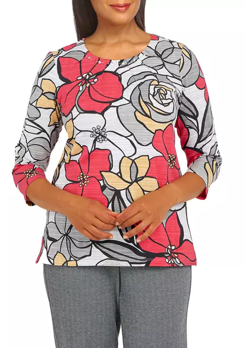 Promo π₯ Alfred Dunner Petite Copper Canyon Crew Neck Three-Quarter Sleeve Geo-Print Top π