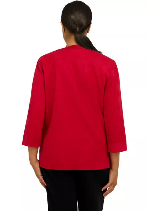 Best reviews of π Alfred Dunner Plus Size Sorrento Asymmetric Floral Embroidered Ribbed Top π₯°