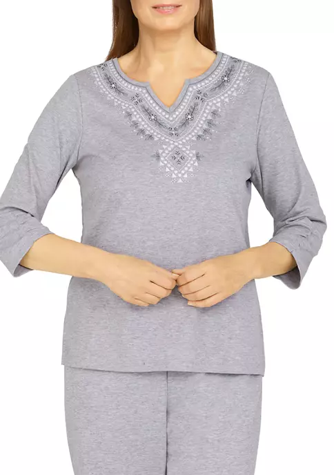 Hot Sale π Alfred Dunner Petite Copper Canyon Crew Neck Three-Quarter Sleeve Top π