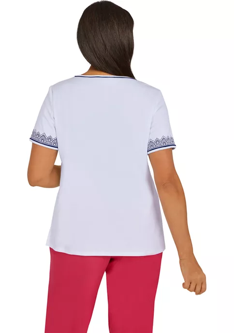 Best reviews of π Alfred Dunner Plus Size Sorrento Asymmetric Floral Embroidered Ribbed Top π₯°