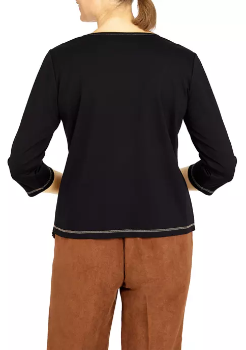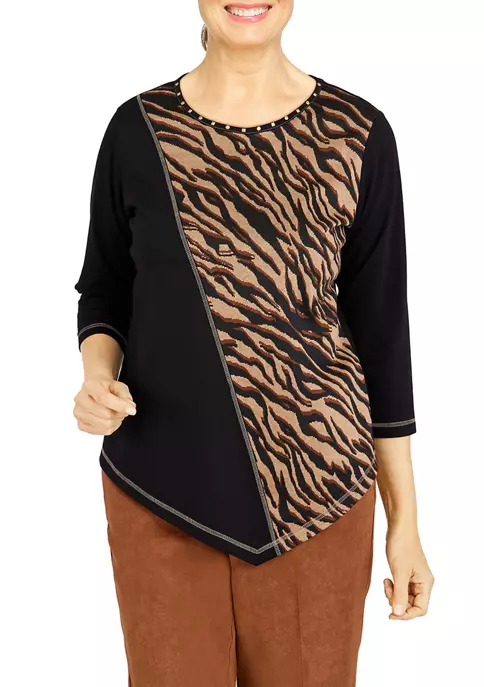 Best Sale π Alfred Dunner Petite Copper Canyon Asymmetrical Hem 3/4 Sleeve Floral Print Top π