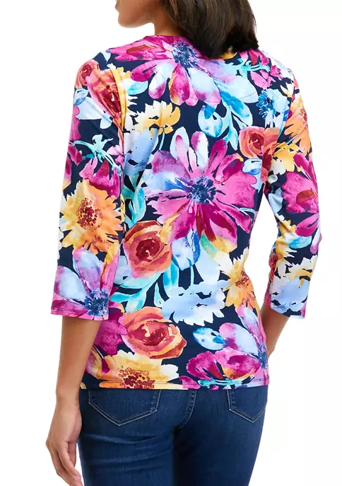 Budget π Alfred Dunner Petite Copper Canyon Crew Neck Long Sleeve Floral Print Sweater π
