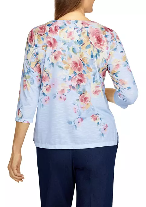 Hot Sale π Alfred Dunner Petite Copper Canyon Crew Neck Three-Quarter Sleeve Top π