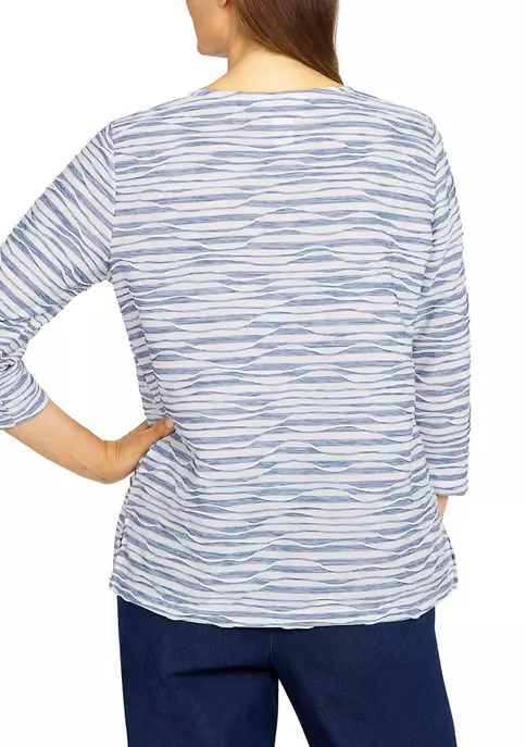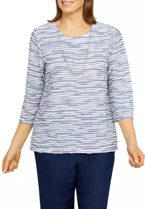 Promo π₯ Alfred Dunner Petite Copper Canyon Crew Neck Three-Quarter Sleeve Geo-Print Top π