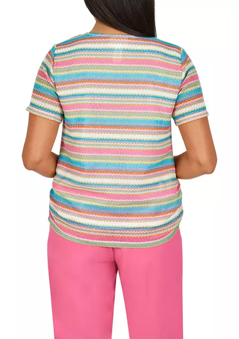 Best Sale π Alfred Dunner Petite Copper Canyon Asymmetrical Hem 3/4 Sleeve Floral Print Top π