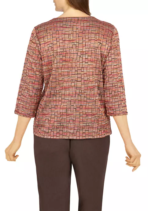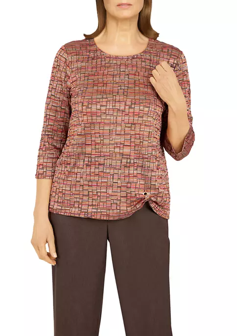 Best Sale π Alfred Dunner Petite Copper Canyon Asymmetrical Hem 3/4 Sleeve Floral Print Top π