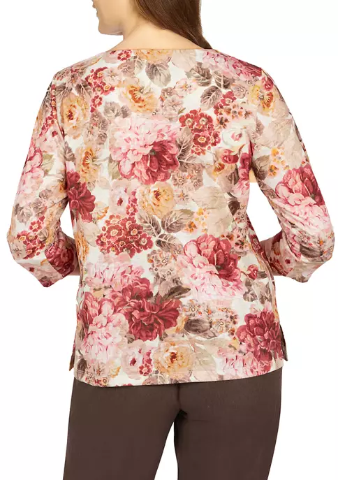 Best Sale π Alfred Dunner Petite Copper Canyon Asymmetrical Hem 3/4 Sleeve Floral Print Top π