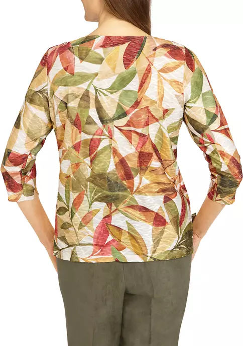 Promo π₯ Alfred Dunner Petite Copper Canyon Crew Neck Three-Quarter Sleeve Geo-Print Top π