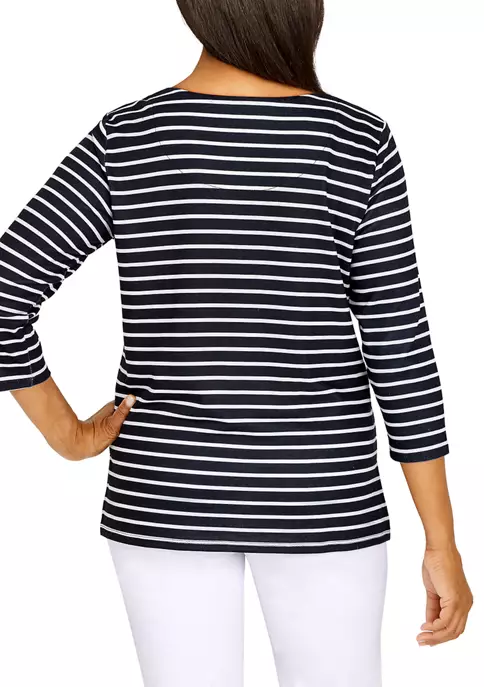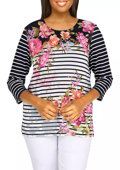 Promo π₯ Alfred Dunner Petite Copper Canyon Crew Neck Three-Quarter Sleeve Geo-Print Top π