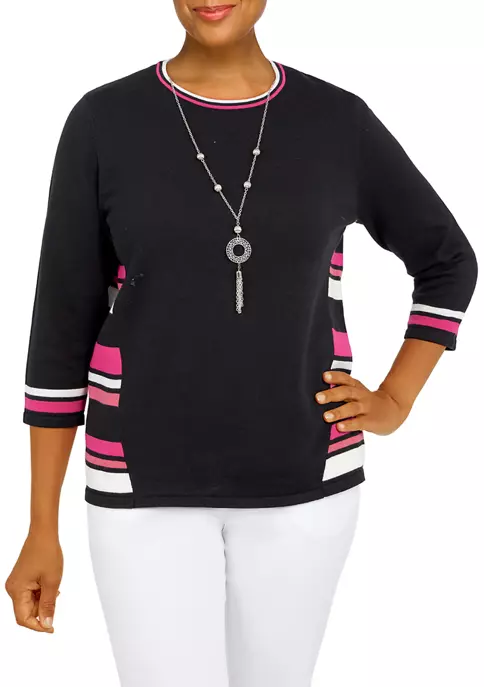 Hot Sale π₯° Alfred Dunner Petite Empire State 3/4 Sleeve Sweater With Removable Necklace β