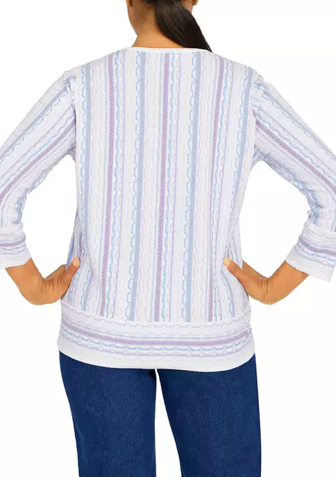 Promo π₯ Alfred Dunner Petite Copper Canyon Crew Neck Three-Quarter Sleeve Geo-Print Top π