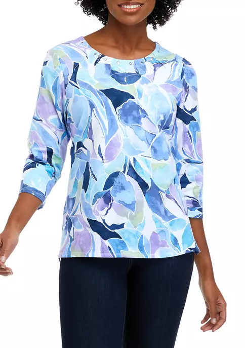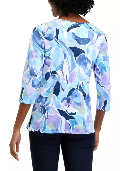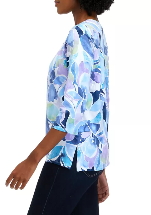 Best Sale π Alfred Dunner Petite Copper Canyon Asymmetrical Hem 3/4 Sleeve Floral Print Top π