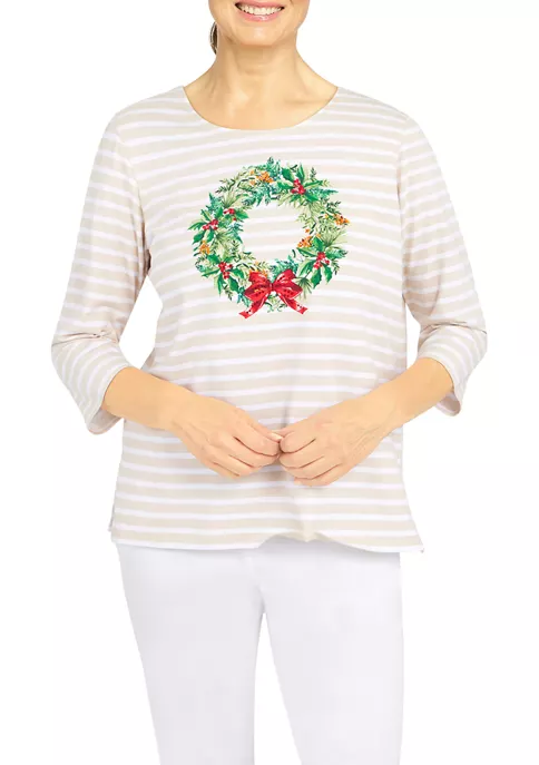 Promo π₯ Alfred Dunner Petite Copper Canyon Crew Neck Three-Quarter Sleeve Geo-Print Top π