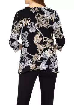 Deals π Alfred Dunner Plus Size Floral Scroll Puff Print Knit Top π₯°