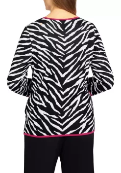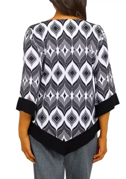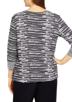 Discount π Alfred Dunner Petite Theater District Split Neck 3/4 Sleeves Spliced Texture Top π€©