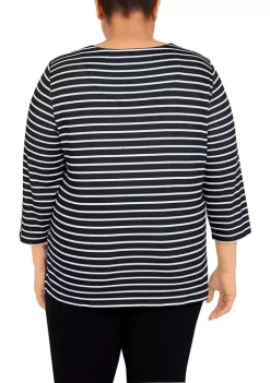 Coupon π Alfred Dunner Plus Size Theater District Crew Neck 3/4 Sleeve Contrast Knit Top π