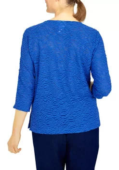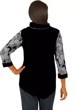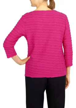 Promo 𧨠Alfred Dunner Petite Theater District Crew Neck 3/4 Sleeve Contrast Knit Top π§¨