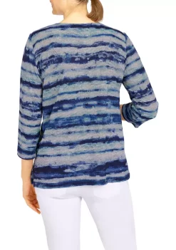 Wholesale π Alfred Dunner Petite Lake Placid Watercolor Print Top With Lace AppliquΓ© π€©