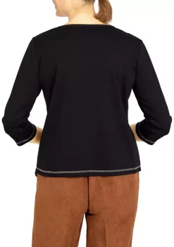 Discount π Alfred Dunner Petite Madacascar 3/4 Sleeve Color Block Top with Suede Trim π§¨