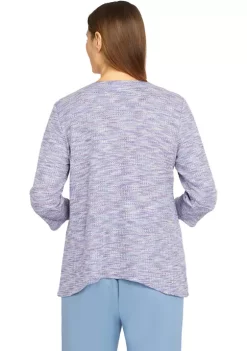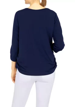 Discount π Alfred Dunner Petite Theater District Split Neck 3/4 Sleeves Spliced Texture Top π€©