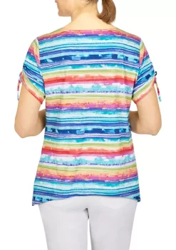 Discount π Alfred Dunner Petite Madacascar Spliced Asymmetrical Hemline 3/4 Sleeve Top β