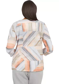 Flash Sale π― Alfred Dunner Petite Stonehenge Lace Crew Neck 3/4 Sleeves Stripe Print Top π―