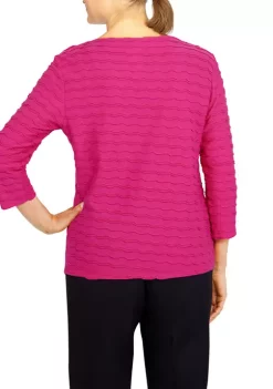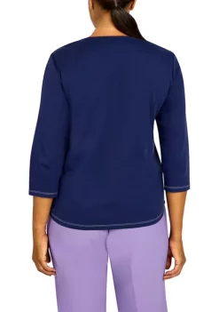 Hot Sale π Alfred Dunner Petite Copper Canyon Crew Neck Three-Quarter Sleeve Top π