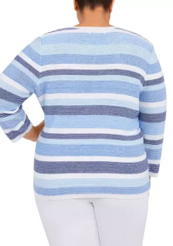 Hot Sale π Alfred Dunner Plus Size Shenandoah Valley Crew Neck 3/4 Sleeve Stripe Sweater βοΈ