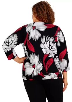 Deals π Alfred Dunner Plus Size Empire State Flower Split Neck 3/4 Sleeve Sweater β