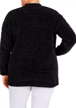 Budget β¨ Alfred Dunner Plus Size Classics Open Front Chenille Cardigan With Pockets β€οΈ