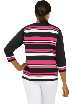 Coupon π Alfred Dunner π© Women’s Shenandoah Valley Crew Neck 3/4 Sleeve Stripe Sweater π―