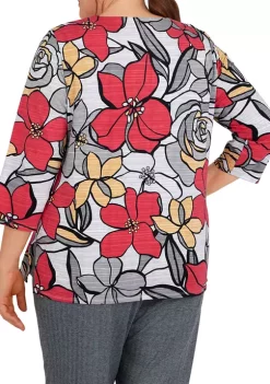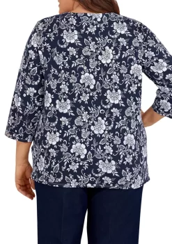 Best Pirce π Alfred Dunner Plus Size Empire State Crew Neck 3/4 Sleeve Floral Print Top β