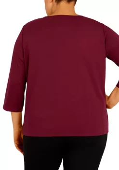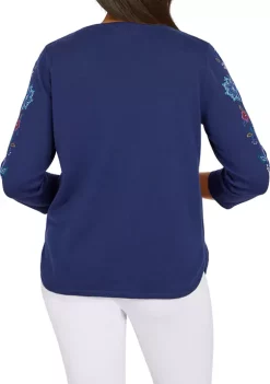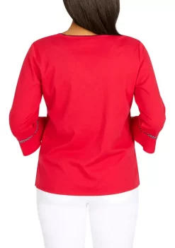 Best deal π₯ Alfred Dunner Plus Size Checking In Embroidered V-Neck 3/4 Sleeve Top π