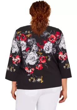 Outlet π Alfred Dunner Plus Size Floral Park Crew Neck Asymmetrical Hemline Top π