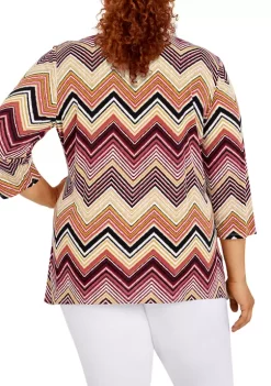 Hot Sale π₯° Alfred Dunner Plus Size Copper Canyon π© Womens Split Neck Chevron Print Top π§¨