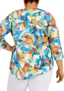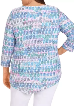 New π Alfred Dunner Plus Size Lake Placid Embellished Asymmetrical Hemline Print Top β