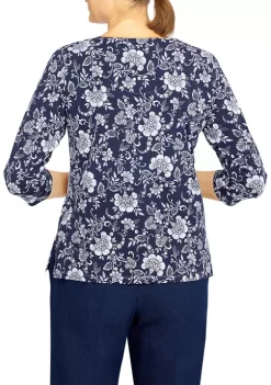 Budget π Alfred Dunner π© Women’s Shenandoah Valley Split Neckline 3/4 Sleeve Print Top π₯