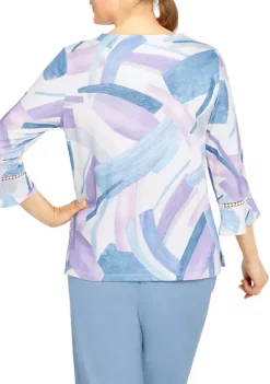 Cheapest π Alfred Dunner π© Women’s Floral Park Crew Neck 3/4 Sleeve Tie Dye Print Top π