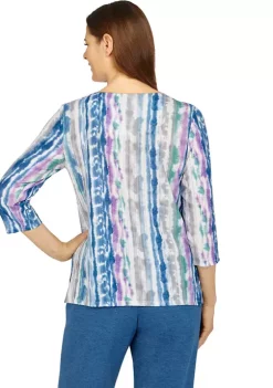 Cheap π Alfred Dunner π© Women’s Madagascar Spliced Asymmetrical Hemline 3/4 Sleeve Top π₯